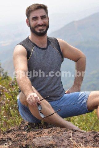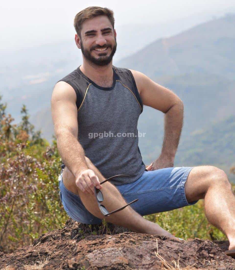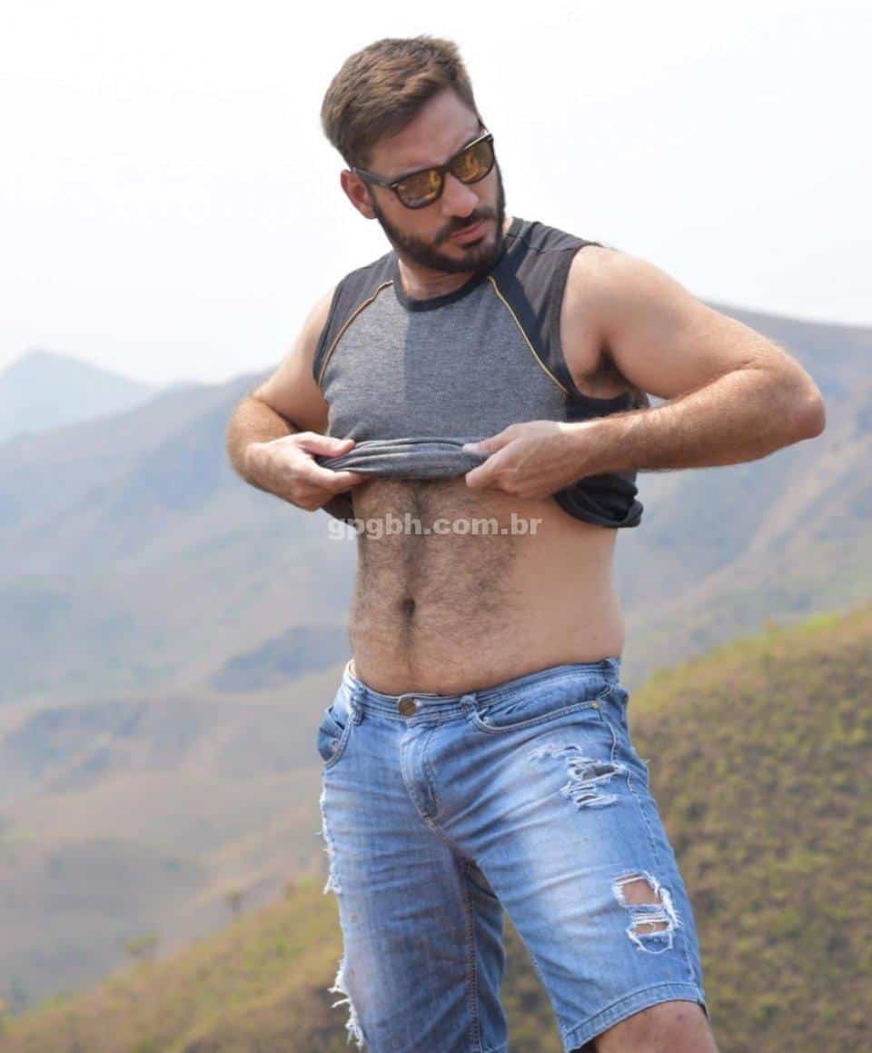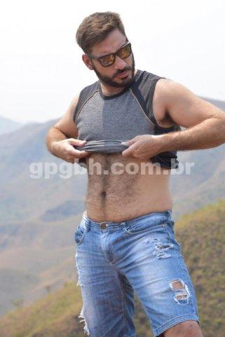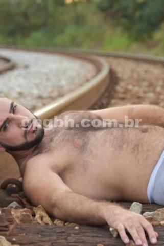 Com 1,83m de altura, 89 kg, pelos corporais, barba, corpo torneado e nível superior.