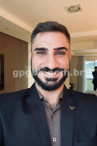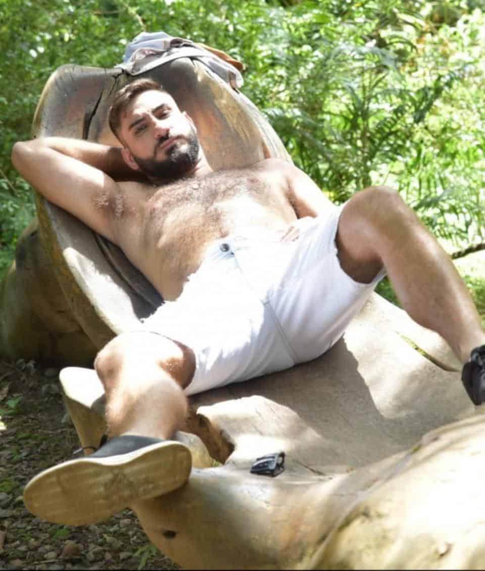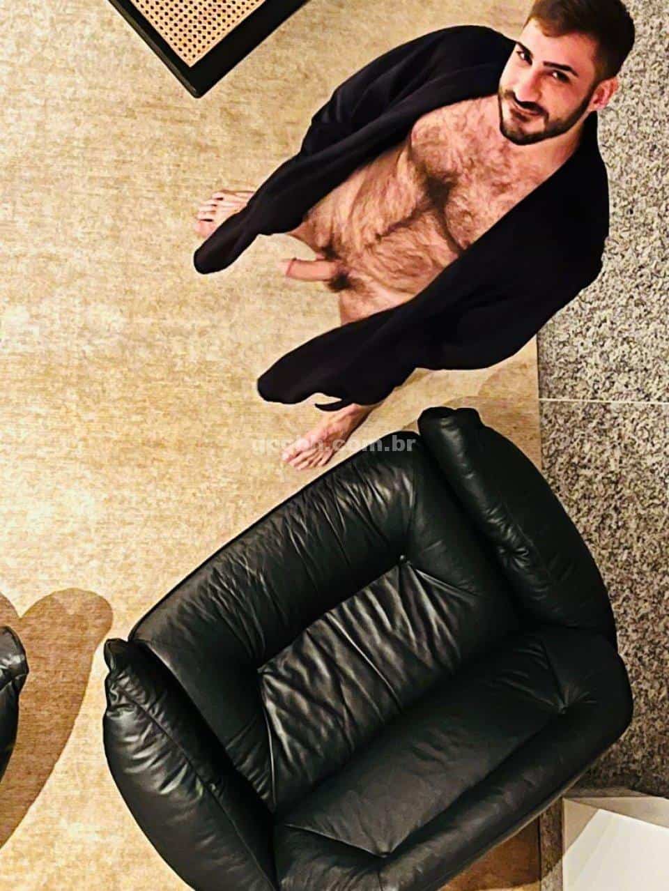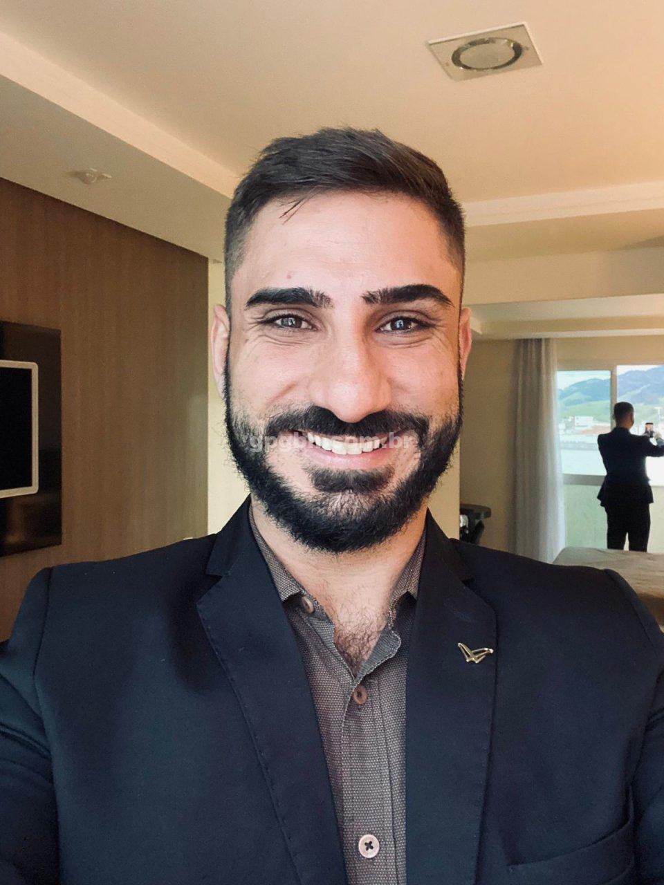 Com 1,83m de altura, 89 kg, pelos corporais, barba, corpo torneado e nível superior.