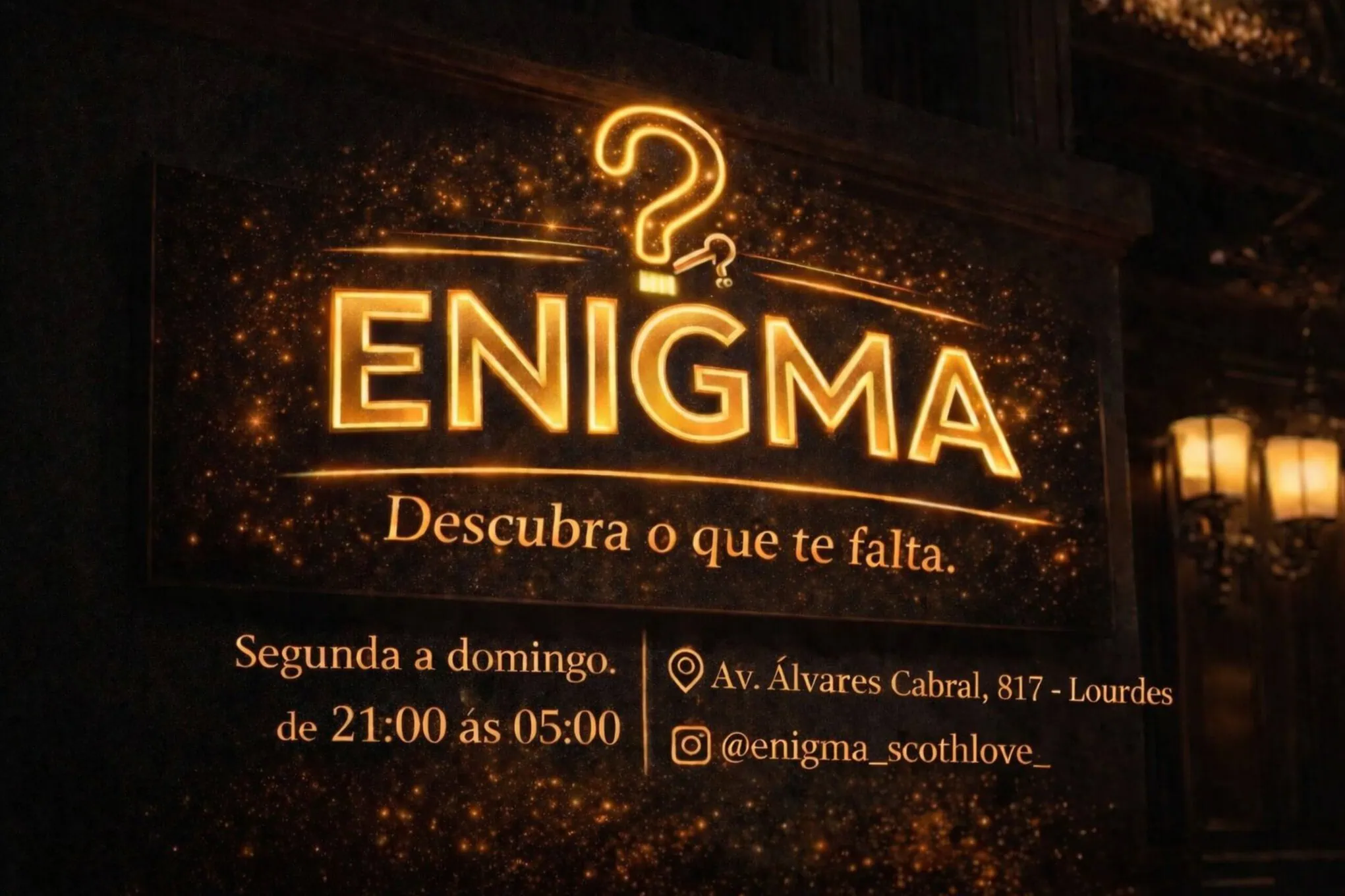 Se você procura um lugar relaxante com exclusividade, a Enigma é o seu destino, desfrute de uma carta de bebidas criteriosamente selecionada e drinks autorais em um ambiente planejado para o seu conforto total, aqui a beleza é a simpatia de anfitriãs que transformam cada brinde em um momento inesquecível. É um refúgio discreto, sofisticado e pronto para superar suas expectativas. Venha descobrir o lado mais elegante da noite!